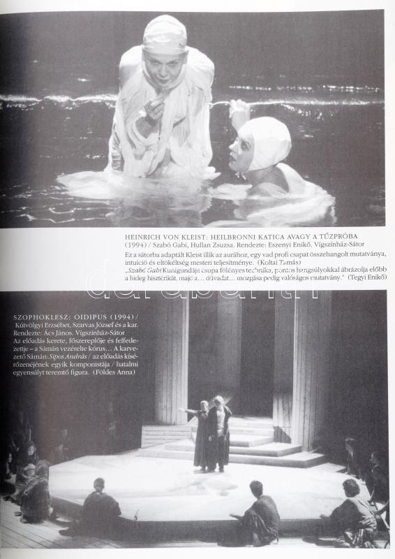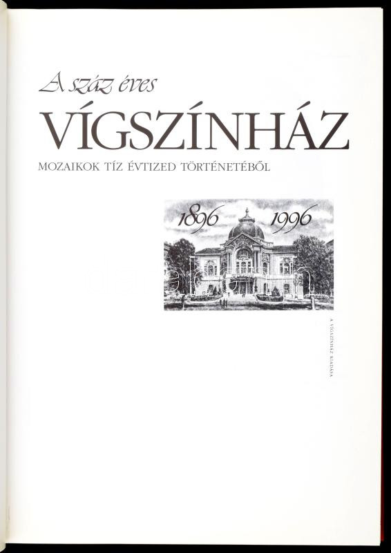A száz éves Vígszínház 1896-1996. Mozaikok tíz évtized történetéből. Fszerk.: Radnóti Zsuzsa. Bp.,[1996.], Vígszínház. Az elülső borító emlék-bejegyzéssel, 1963-1964-es színházi szakkör emlékére szóló ajándékozási bejegyzéssel, azonosítatlan aláírásokkal. Kiadói bársony-kötés, a borítón fém plakettel.
