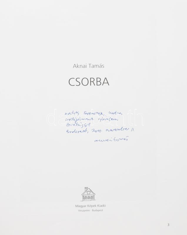 Aknai Tamás: Csorba. Aknai Tamás (1945-) művészettörténész, egyetemi tanár által Matits Ferenc művészettörténész, művészeti író, egyetemi tanárnak DEDIKÁLT! Veszprém-Bp., 2010, Magyar Képek, 167 p. Reprodukciókkal, Csorba Simon László műveivel gazdagon illusztrált. Kiadói kartonált papírkötés.