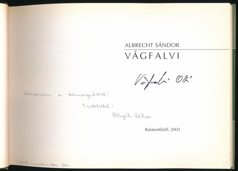Albrecht Sándor: Vágfalvi. A művész, Vágfalvi Ottó (1925-2015) festőművész által ALÁÍRT példány! Balatonfűzfő, 2003, (Füzfőgyártelep, Tradeorg-ny.) Gazdag képanyaggal illusztrált. Kiadói kartonált papírkötés.