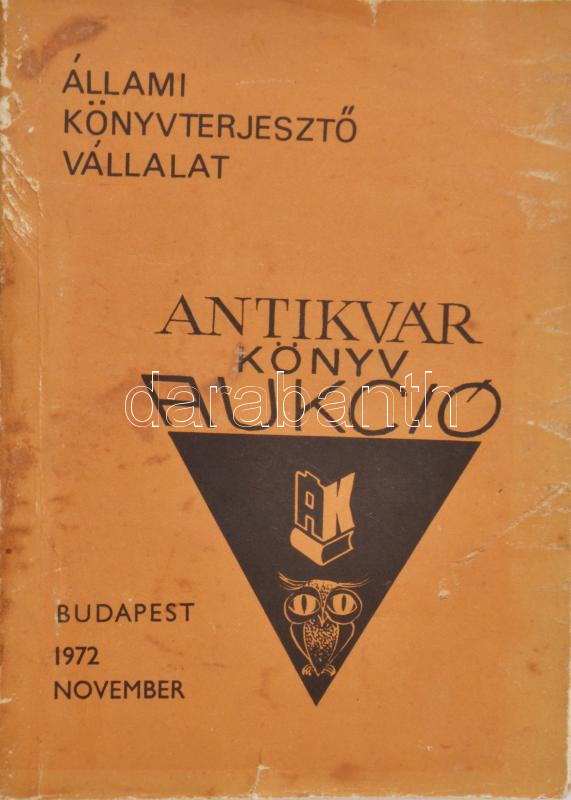Állami Könyvterjesztő Vállalat Antikvár könyv aukció. Bp., 1977, papír... https://www.darabanth.com/de/472-Fernauktion/472.0/Bucher/Bucher-Architektur-Kunst~2000026/Allami-Konyvterjeszto-Vallalat-Antikvar-konyv-aukcio-Bp-1977-papirkotes-kopott~II3147492