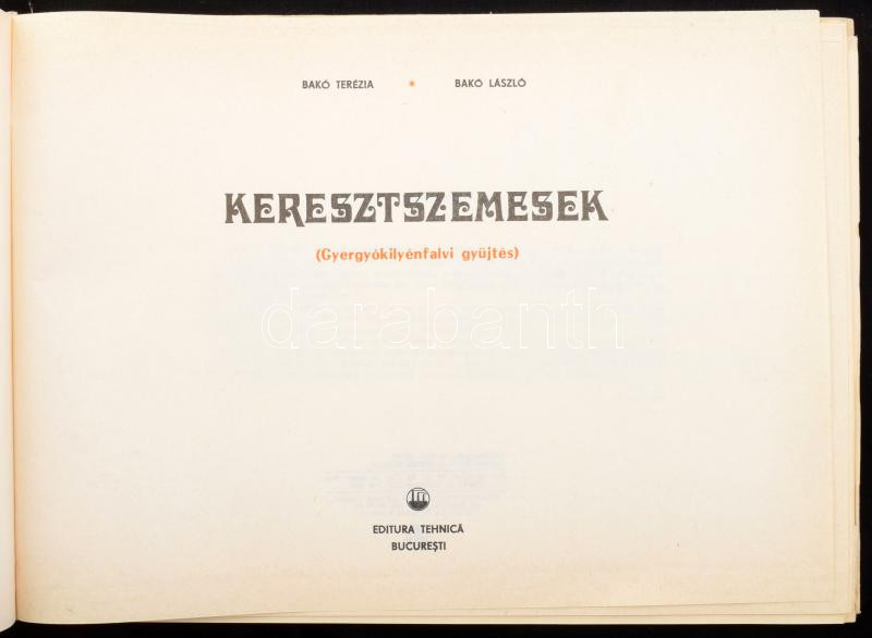 Bakó Terézia - Bakó László: Keresztszemesek. (Gyergyókilyénfalvi gyűjt... https://www.darabanth.com/de/472-Fernauktion/472.0/Bucher/Bucher-Architektur-Kunst~2000026/Bako-Terezia-Bako-Laszlo-Keresztszemesek-Gyergyokilyenfalvi-gyujtes-Bukarest-1983~II3201535