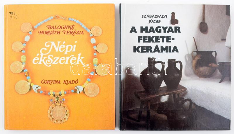 Baloghné Horváth Terézia: Népi ékszerek. Schöbel Magda rajzaival illusztrált. Magyar Népművészet. Bp., 1983, Corvina. Gazdag képanyaggal illusztrált. Kiadói kartonált papírkötés, volt könyvtári példány. + Szabadfalvi József: A magyar feketekerámia. Terézia: Népi ékszerek. Schöbel Magda rajzaival illusztrált. Magyar Népművészet. Bp., 1986, Corvina. Gazdag képanyaggal illusztrált. Kiadói kartonált papírkötés,