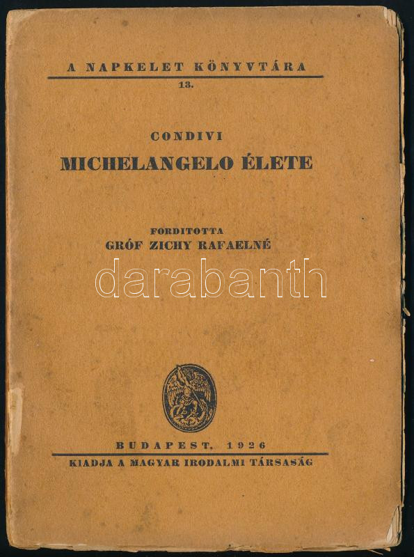 Condivi: Michelangelo élete. Ford: gróf Zichy Rafaelné. Bp., 1926. Mag... https://www.darabanth.com/de/472-Fernauktion/472.0/Bucher/Bucher-Architektur-Kunst~2000026/Condivi-Michelangelo-elete-Ford-grof-Zichy-Rafaelne-Bp-1926-Magyar-Irodalmi-Tarsasag-11~II3084927