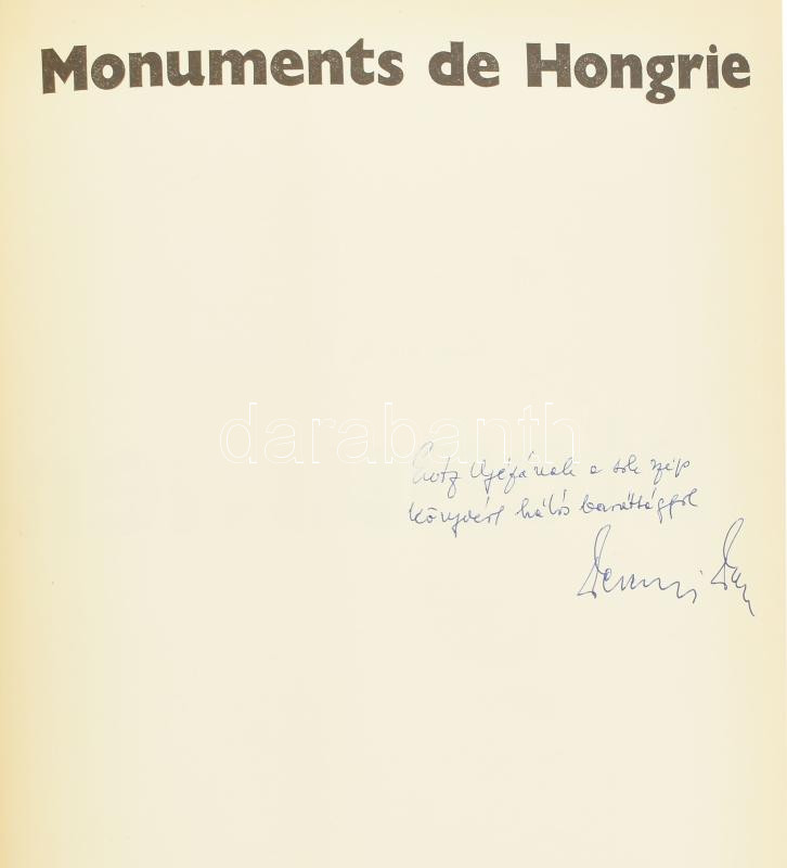 Dercsényi, Dezső: Monuments de Hongrie. Leur sauvegarde, restauration et mise en valeur. A szerző, Dercsényi Dezső (1910-1987) művészettörténész által Entz Géza (1913-1993) művészettörténés részére DEDIKÁLT példány! Bp., 1969, Corvina. Gazdag képanyaggal illusztrált. Francia nyelven. Kiadói egészvászon-kötés, kiadói papír védőborítóban.