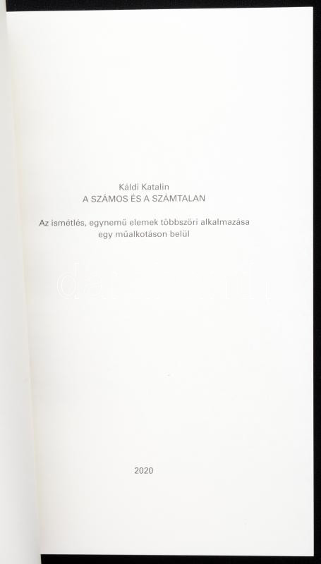 Káldi Katalin: A számos és a számtalan. Az ismétlés, egynemű elemek többszöri alkalmazása egy műalkotáson belül. Bp., 2020, MKE. 98 p. Színes és fekete-fehér képekkel gazdagon illusztrált. Kiadói papírkötés.