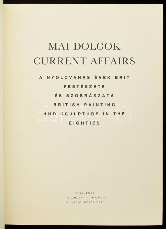 Mai dolgok. Current Affairs. A nyolcvanas évek brit festészete és szob... https://www.darabanth.com/de/472-Fernauktion/472.0/Bucher/Bucher-Architektur-Kunst~2000026/Mai-dolgok-Current-Affairs-A-nyolcvanas-evek-brit-festeszete-es-szobraszata-Bp-Mucsarnok-~II3201928