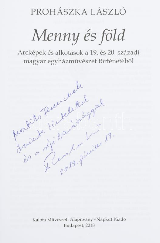 Prohászka László: Menny és föld. Arcképek és alkotások a 19. és 20. századi magyar egyházművészet történetéből. A szerző által Matits Ferenc művészettörténész, művészeti író,