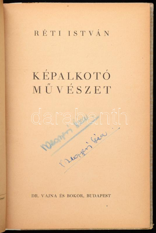 Réti István: Képalkotó művészet. Bp.,1944, Vajna és Bokor, (Globus-ny.) Későbbi pótolt félvászon-kötés, belső kötéstáblán Ex libris Dr. Megyeri Géza, előzéklapon apró szakadással, címlapon névbejegyzéssel.