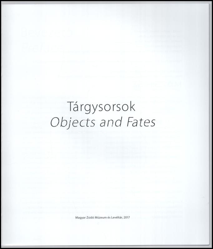 Toronyi Zsuzsanna: Tárgysorsok. Objects and Fates. Bp., 2017, Magyar Zsidó Múzeum és Levéltár. Gazdag képanyaggal illusztrált. Magyar és angol nyelven. Kiadói papírkötés.