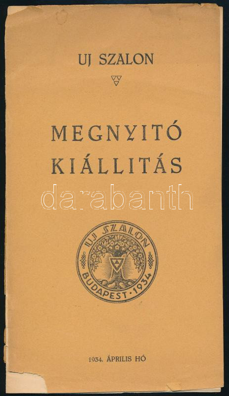 Beschreibung: Uj Szalon. Megnyitó kiállítás. 1934. április. Bp., 1934, Uj Szalon, 6 sztl. lev. Kiadói papírkötés, szakadt borítóval.