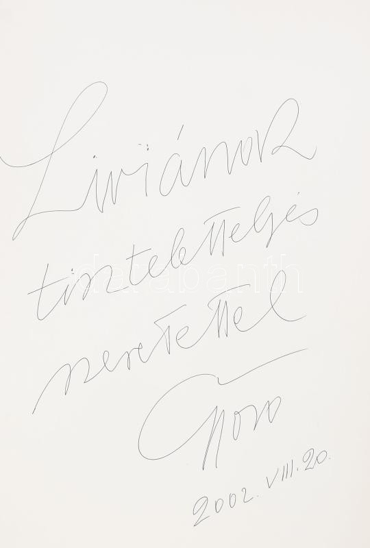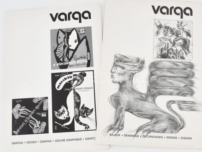 Varga Győző rajzok és grafika, 2 db mappa. 2x20 reprodukcióval . Mindkettő a művész által Mohás Lívia (1928-2024) pszichológus, József Attila-díjas írónak dedikált! Bp., 1999 és én, k.n. Kiadói karton mappában, egyik mappa gerince sérült. 28x43 cm