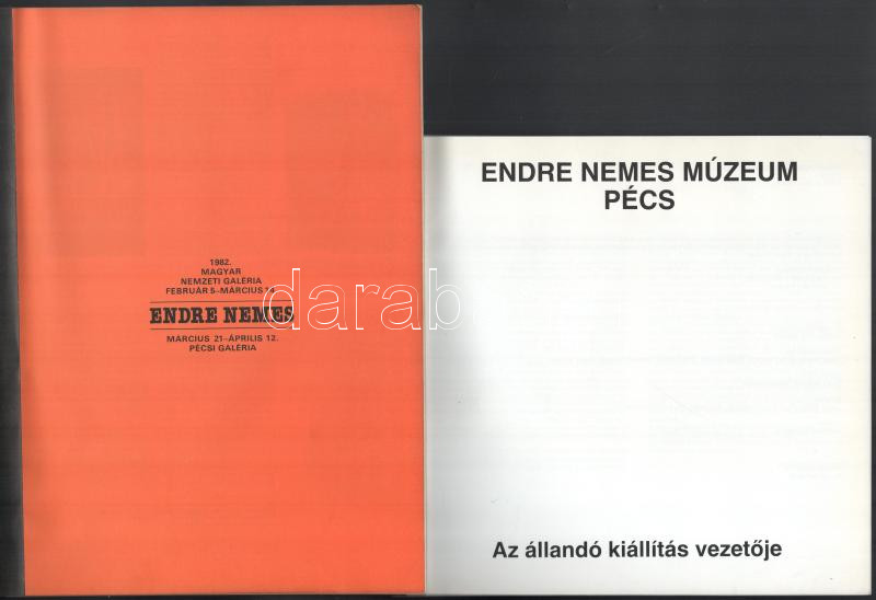 cca 1984 Endre Nemes Múzeum. Állandó kiállítás vezetője. Szerk.: Romváry Ferenc. Janus Pannonius Múzeum művészeti kiadványai 53. Pécs, én., Janus Pannonius Múzeum. Kiadói papírkötés. + 1982 Endre Nemes. Bp. - Pécs, Magyar Nemzeti Galéria - Pécsi Galéria. Kiadói papírkötés.