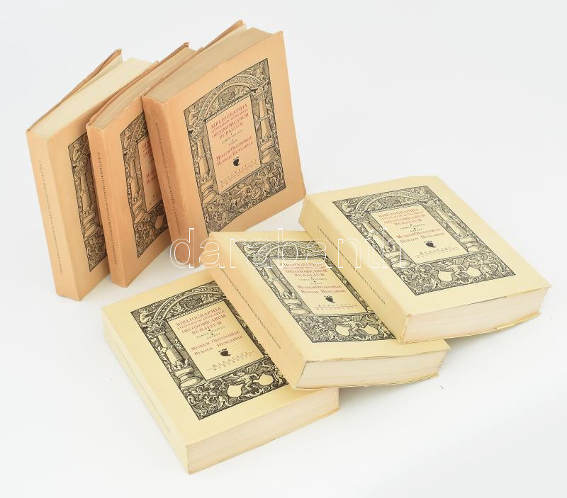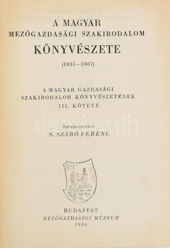 A magyar gazdasági szakirodalom könyvészete - Bibliographia Litterarum Hungariae Oeconomicarum. III-VIII. kötet. Összeáll.: S. Szabó Ferenc, Takács Imre. Bp., 1956-1968, Mezőgazdasági Múzeum, (Franklin - Pécs, Pécsi Szikra - Zrínyi - ny.), 659+1 p.; 379 p.+ 3 t. ; 595+1 p.+4 t.; 611+1 p.+4 t.; 528 p.+ 4 t. ; 751+1 p.+5 t. Kiadói papírkötés, néhol bejelölésekkel, de alapvetően jó állapotban. Alapvető, fontos bibliográfia. Az I-II. kötet hiányzik.