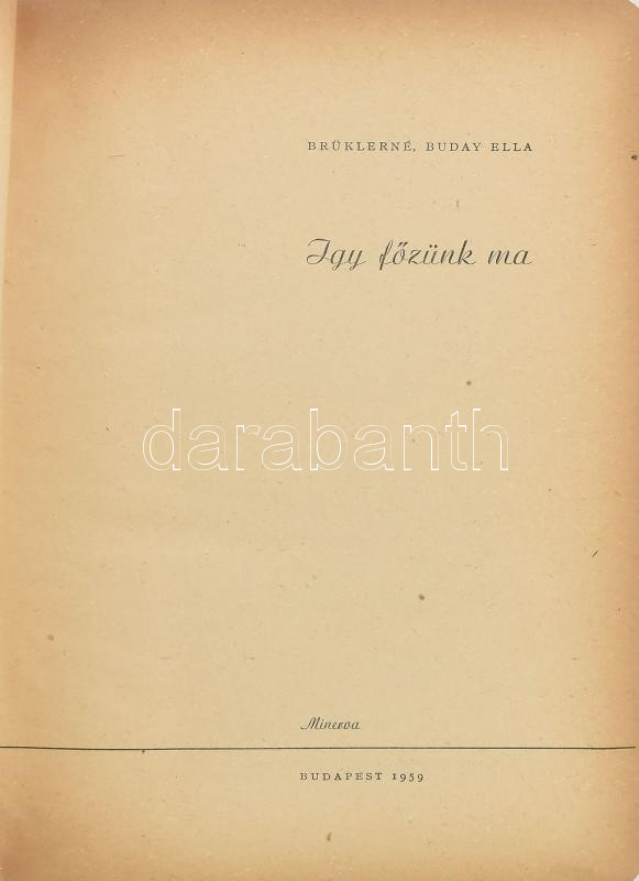 Brüklerné Buday Ella: Így főzünk ma. Bp., 1959, Minerva. Kiadói papírk... https://www.darabanth.com/de/472-Fernauktion/472.0/Bucher/Bucher-Gastronomie-und-Gartnerei~500023/Bruklerne-Buday-Ella-Igy-fozunk-ma-Bp-1959-Minerva-Kiadoi-papirkotes-kisse-foltos-b~II3084603