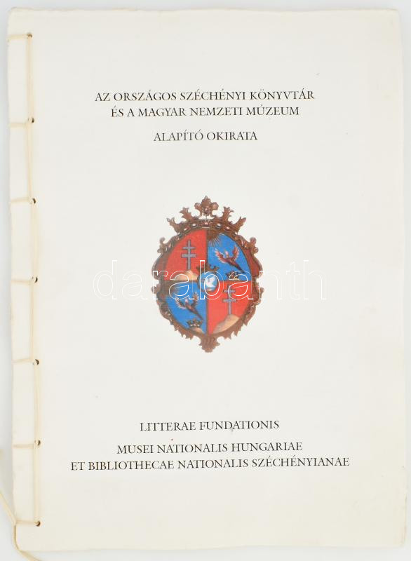 Az Országos Széchényi Könyvtár és a Magyar Nemzeti Múzeum alapító okirata. Bp., 2002, OSZK (Szentendre, Vincze László és Fiai Papírmerítő Műhely). Kiadói zsinórfűzéses kötésben, merített papíron, 41,5x30 cm.