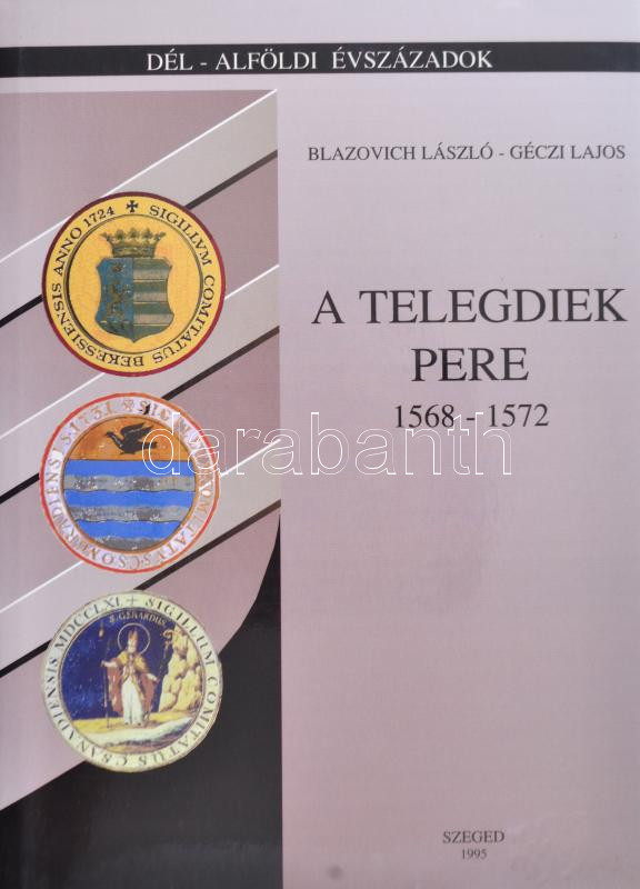 Blazovich László - Géczi Lajos: A Telegdiek pere 1568-1572. Dél-Alföldi Évszázadok 6. Szeged, 1995. Térképmelléklettel. Megjelent 500 példányban. Kiadói egészvászon kötés, papír védőborítóval, jó állapotban.
