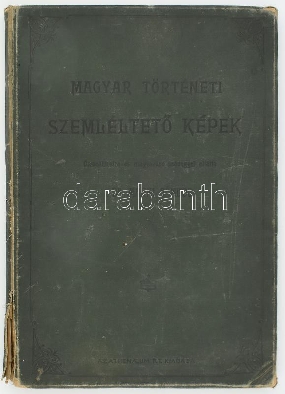 Dr. Márki Sándor: Magyar történeti szemléltető képek. Összeáll. és magyarázó szöveggel ellátta: - - . Bp., é.n. (cca 1900-1910), Athenaeum, 2 sztl. lev.+ 130 t. (ebből 13 színes). Folio. Gazdag fekete-fehér és színes képanyaggal, hasonmásokkal, térképekkel illusztrálva. Kiadói egészvászon-kötés, kopott, sérült borítóval és gerinccel, helyenként lapszéli szakadásokkal, sérült, foltos lapokkal. Ritka!