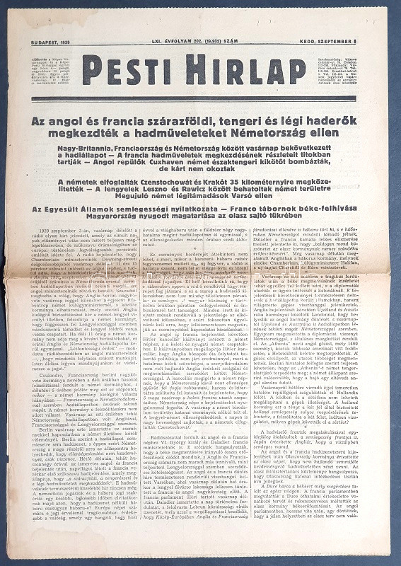 [II. Világháború] Pesti Hirlap. 1939. szeptember 5. (Napilap, LXI. évfolyam, 202. szám)