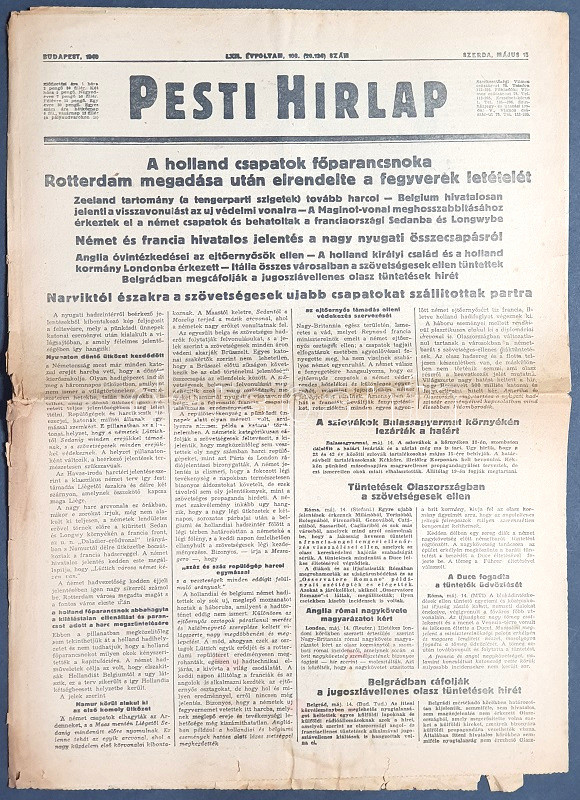 [II. Világháború] Pesti Hirlap. 1940. május 15. (Napilap, LXII. évfolyam, 108. szám)