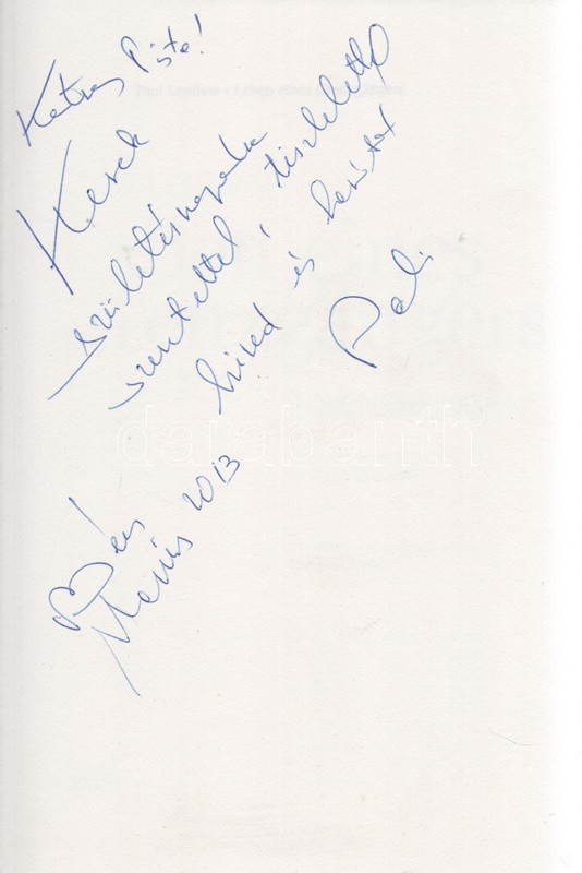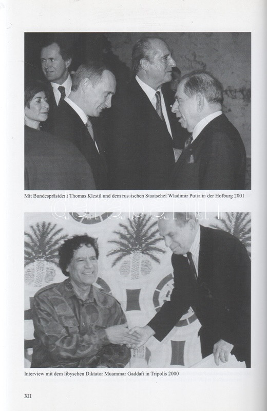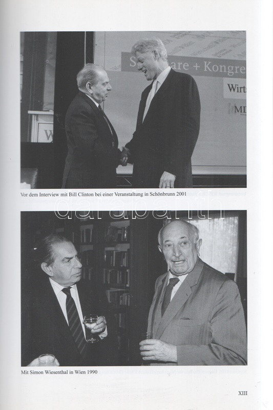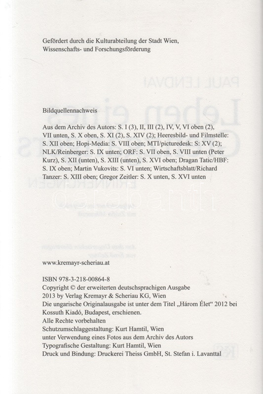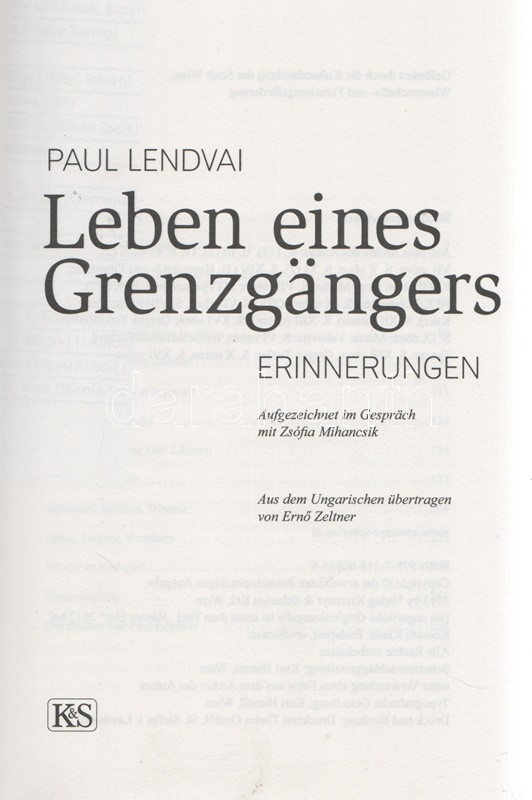 Lendvai, Paul: Leben eines Grenzgängers. Erinnerungen. Aufgezeichnet im Gespräch mit Zsófia Mihancsik. Aus dem Ungarischem übertragen von Ernő Zeltner. (Dedikált.) [Bécs] (Wien, 2013). Verlag Kreymar & Scheriau (Druckerei Theiss GmbH). 255 + [1] p. + 8 t. (kétoldalas). Első osztrák kiadás. Dedikált: ,,Kedves Pista! Kerek születésnapodra szeretettel, tisztelettel, híved és barátod, Pali, Bécs, 2013". A Paul Lendvai (sz. 1929) magyar származású osztrák újságíróval, osztrák televíziós műsorvezetővel, Közép-Kelet-Európa-kommentárorral készült életmű-interjú eredeti nyelven ,,Három élet: Beszélgetés Mihancsik Zsófiával" címen jelent meg (Budapest, 2012, Kossuth Könyvkiadó). Az aktuálpolitikai megjegyzésekben gazdag interjúkötet hátoldalán válogatás a mű baráti ajánlásaiból. Prov.: Horváth István (sz. 1943) közgazdász, diplomata, nagykövet. A közgazdász szerző 1966-tól a külkereskedelemben dolgozott, 1979-től az MSZMP Gazdaságpolitikai Bizottságának tagja, 1983-tól hágai, 1984-1991 között bonni nagykövet, majd Horn Gyula külpolitikai tanácsadója. Feliratozott kiadói egészvászon kötésben, színes, illusztrált kiadói védőborítóban. Jó példány.