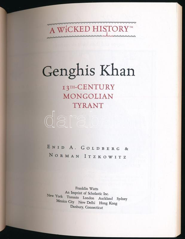 Norman Itzkowitz, Enid A. Goldberg: Genghis Khan (A Wicked History). 13th-Century Mongolian Tyrant. Danbury, 2008, Scholastic. Angol nyelven. Kiadói papírkötésben.