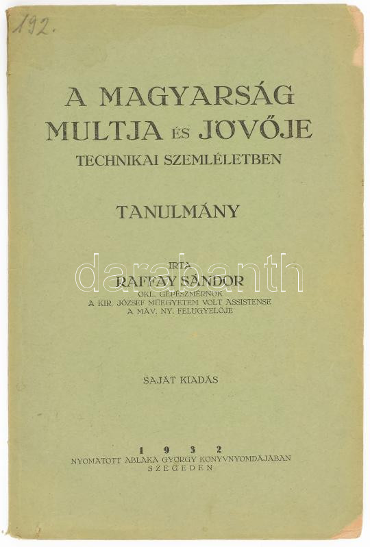 Raffay Sándor: A Magyarság multja és jövője technikai szemléletben. Ta... https://www.darabanth.com/de/472-Fernauktion/472.0/Bucher/Bucher-Geschichte~500020/Raffay-Sandor-A-Magyarsag-multja-es-jovoje-technikai-szemleletben-Tanulmany-Szerzoi-kiadC3~II3184422