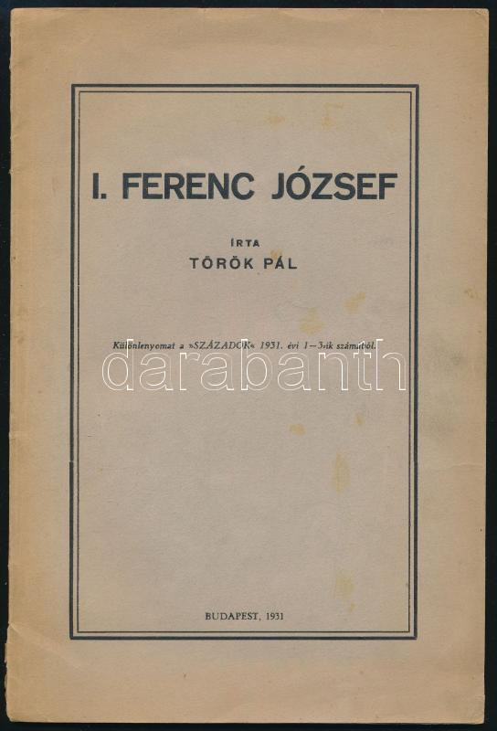 Török Pál: I. Ferenc József. Különlenyomat . Bp., 1931., Kir. M. Egyet... https://www.darabanth.com/de/472-Fernauktion/472.0/Bucher/Bucher-Geschichte~500020/Torok-Pal-I-Ferenc-Jozsef-Kulonlenyomat-Bp-1931-Kir-M-Egyetemi-Nyomda-49-p-Kiado~II3153844