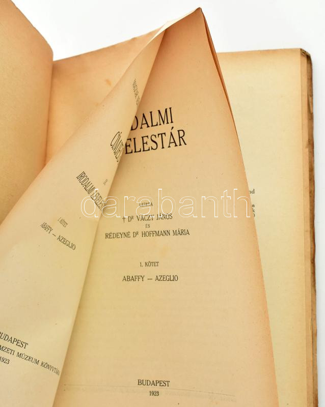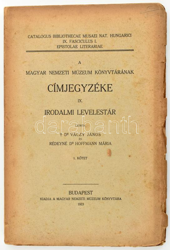 dr .Váczy Lajos és Rédeyné Dr. Hoffmann Mária: A Magyar Nemzeti Múzeum könyvtárának címjegyzéke IX/ I. Irodalmi levelestár gróf Széchenyi István könyvtára. Bp., 1923. Magyar Nemzeti Múzeum. 208 p. Kiadói papírborítóval