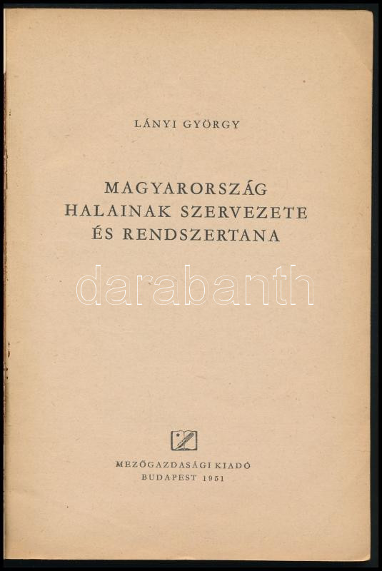 Lányi György: Magyarország halainak szervezete és rendszertana. Bp., 1951, Mezőgazdasági. Kiadói papírkötés, kissé sérült gerinccel, kissé kopott borítóval.