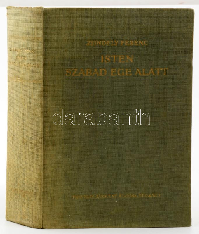 Zsindely Ferenc: Isten szabad ege alatt. Elbeszélések vadról, vadászatról, vadászemberekről. Zsindely Endre felvételeivel. Bp,[1933],Franklin, 277+2 p.+ 64 (fekete-fehér fotók) t. Kiadói aranyozott egészvászon-kötés, kopott borítóval és fakó gerinccel, kissé foltos lapokkal, a címlapon régi tulajdonosi bélyegzésekkel és dátumozással (Szentpétery Géza pilisi mérnöki és erdőgazdasági irodája), ajándékozási sorokkal.