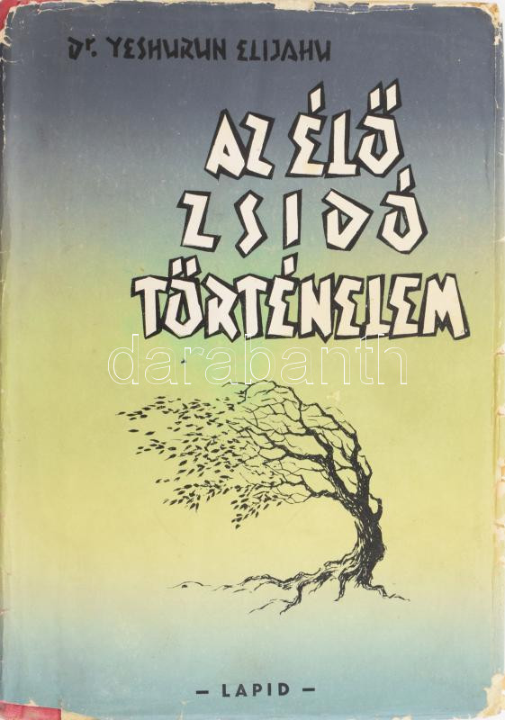 Jeshurun Élijáhu: Az élő zsidó történelem. Ábrahámtól Izrael állama bármicvájáig. Natanya, [1961.], Lapid. Kiadói félvászon-kötés, sérült, hiányos kiadói papír védőborítóban, kopott borítóval, foltos, laza, sérült fűzéssel.