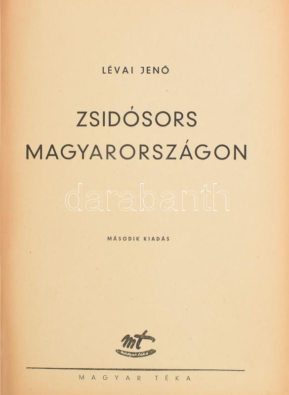 Lévai Jenő: Zsidósors Magyarországon. Bp.,1948, Magyar Téka, 479 p. 2.... https://www.darabanth.com/de/472-Fernauktion/472.0/Bucher/Bucher-Judaica~500030/Levai-Jeno-Zsidosors-Magyarorszagon-Bp-1948-Magyar-Teka-479-p-2-kiadas-Kiadoi-felva~II3196493