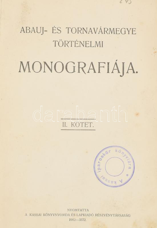 Abauj- és tornavármegye monográfiája II. kötet. Kassa, 1912. Könyvnyom... https://www.darabanth.com/de/472-Fernauktion/472.0/Bucher/Bucher-Reise-und-Ortgeschichte~500002/Abauj-es-tornavarmegye-monografiaja-II-kotet-Kassa-1912-Konyvnyomda-es-Lapkiado-rt-160~II3199443
