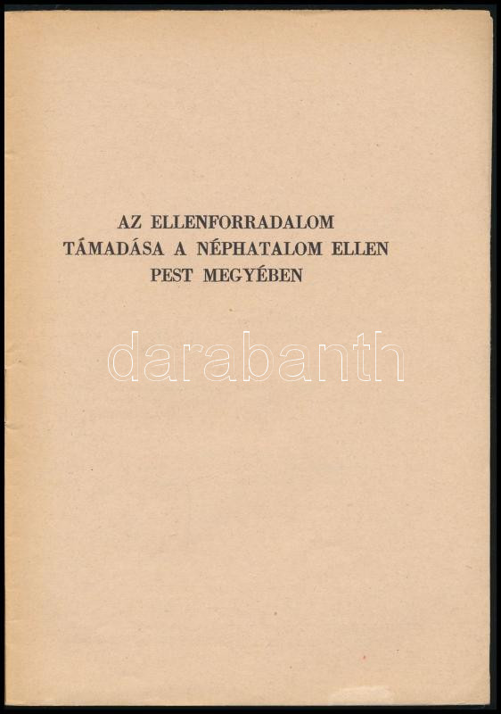 Az ellenforradalom támadása a néphatalom ellen Pest megyében. Bp., 1957., Egyetemi Nyomda. Kiadói papírkötés.