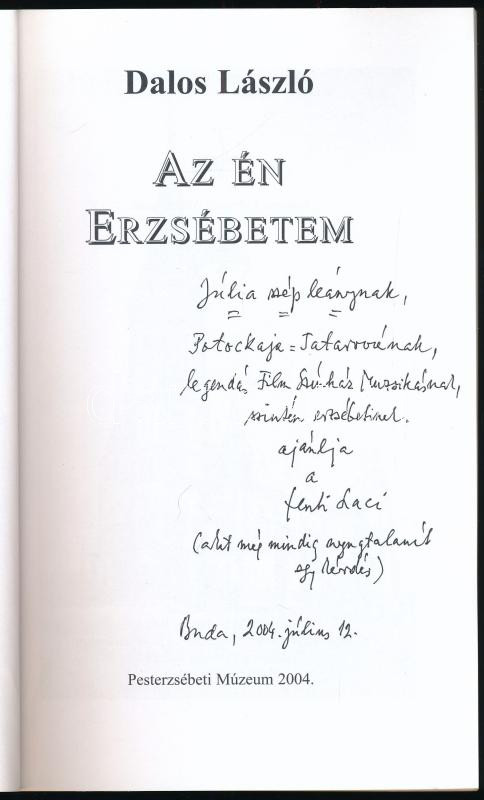 Dalos László: Az én Erzsébetem. Pesterzsébeti Múzeum Könyvei 2. DEDIKÁLT Szekrényessy Júlia kritikusnak. Bp., 2004, Pesterzsébeti Múzeum. Kiadói papírkötés, jó állapotban.