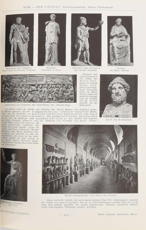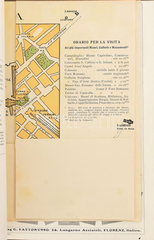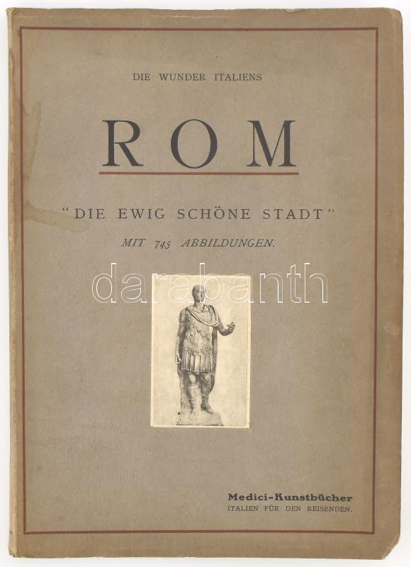 Die Wunder Italiens. Rom. "Die ewig schöne Stadt." Seine Altertümer, Kirchen, Paläste und Kunstschäze. Handbuch für Studierende uns Reisende. Medici-Kunstbücher. Florenz,1938,G. Fattoruso. Német nyelven. Gazdag képanyaggal illusztrált. Kihajtható térképpel. Kiadói papírkötés, foltos borítóval.