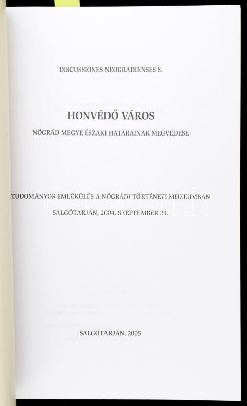 Honvédő város. Nógrád megye északi határainak megvédése. Tudományos emlékülés a Nógrádi Történeti Múzeumban (Salgótarján, 2004. szeptember. 23.) Szerk.: Bagyinszky Istvánné, Szvircsek Ferenc. Discussiones Neogradienses. Salgótarján, 2005, Nógrád Megyei Múzeumi Szervezet. 89 p. Megjelent 300 példányban. Fekete-fehér képekkel, térképekkel gazdagon illusztrált. Kiadói papírkötés.