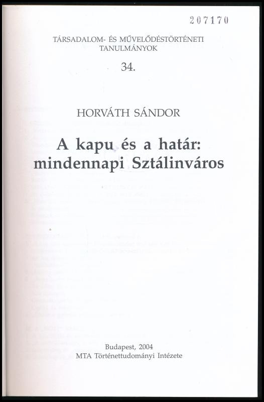Horváth Sándor: A kapu és határ: mindennapi Sztálinváros. Társadalom- ... https://www.darabanth.com/de/472-Fernauktion/472.0/Bucher/Bucher-Reise-und-Ortgeschichte~500002/Horvath-Sandor-A-kapu-es-hatar-mindennapi-Sztalinvaros-Tarsadalom-es-muvelodestorte~II3198210