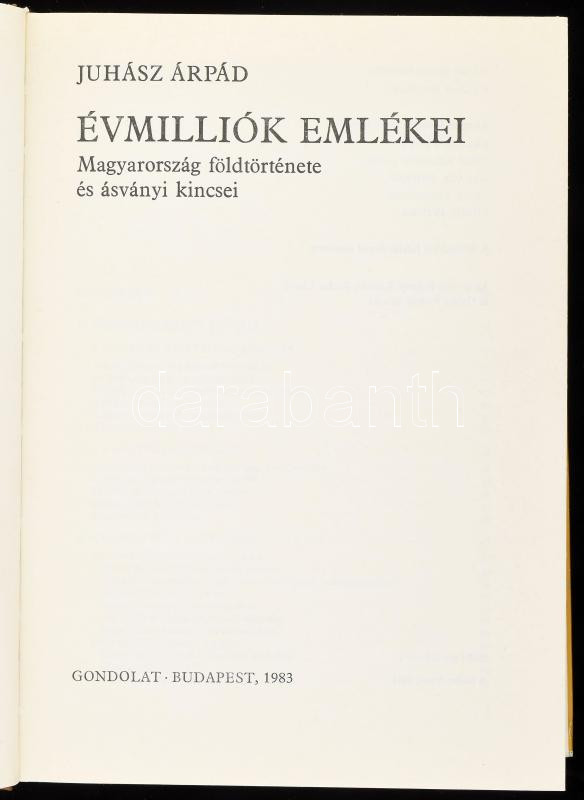 Juhász Árpád: Évmilliók emlékei. Magyarország földtörténeti és ásványi kincsei. Bp., 1983, Gondolat. Első kiadás. Kiadói egészvászon-kötés, kiadói papír védőborítóban.