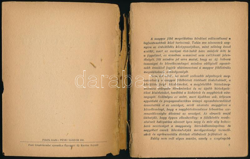 Kerék Mihály: A magyar föld. Magyar Társadalomtudományi Könyvtár 2. Bp.,én,Magyar Élet. Kiadói papírkötés, kissé sérült borítóval és gerinccel, a könyvtest nagyrészt elvált a borítótól.