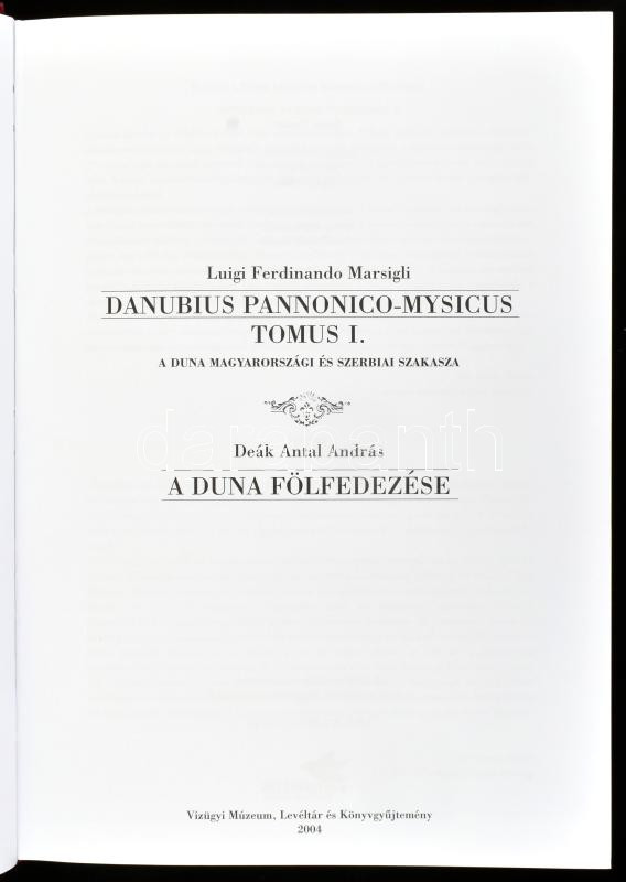 Luigi Ferdinando Marsigli: Danubius Pannonico-Mysicus Tomus I. A Duna magyarországi és szerbiai szakasza. / Deák Antal András: A Duna fölfedezése. Dr. Hiller István elÅ‘szavával. Bp., 2004, VÃzügyi Múzeum, Levéltár és Könyvgyűjtemény. Kiadói aranyozott műbÅ‘r-kötés.