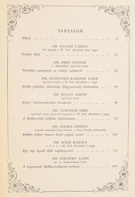 Nagyenyedi Album. Szerk.: Dr. Lukinich Imre. Bp., 1926, Nagyenyedi Bethlen-Kollégium Volt Diákjainak Testvéri Egyesülete,("Pátria"-ny.), 252 p. Ravasz László, Imre Sándor, Szádeczky-Kaross Lajos, Buday Árpád, Lukinich Imre, Zsinka Ferenc, Szász Károly, Szigethy Lajos, Szőnyi Sándor, Garda Samu, Csűrös István, Szilády Zoltán, Barabás Endre írásaival. Gazdag egészoldalas és szövegközti fekete-fehér képanyaggal illusztrált. Kiadói aranyozott egészvászon-kötés, kopott borítóval, sérült gerinccel, ceruzás bejelölésekkel, de belül jó állapotban.