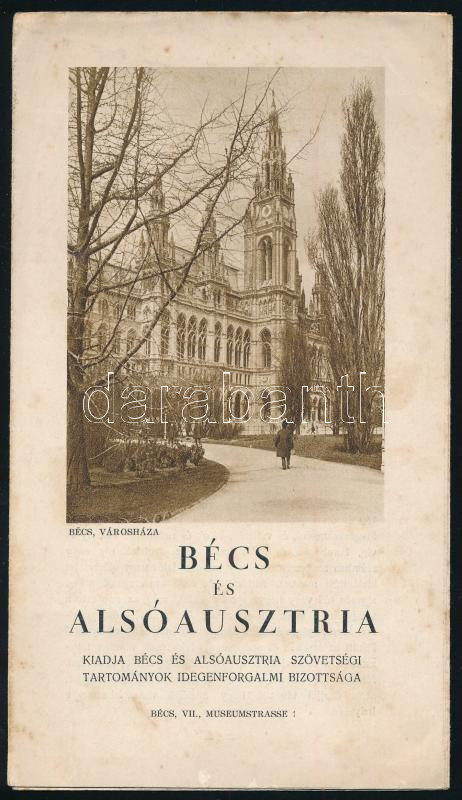 cca 1930-1940 Bécs és Alsó-Ausztria. Bécs, Bécs és Alsó Ausztria Szövetségi Tartományok Idegenforgalmi Bizottsága, kihajtható utazási prospektus, "menetjegyiroda" bélyegzéssel, "Wien Hotel Sächsisscher Hof" címkével.