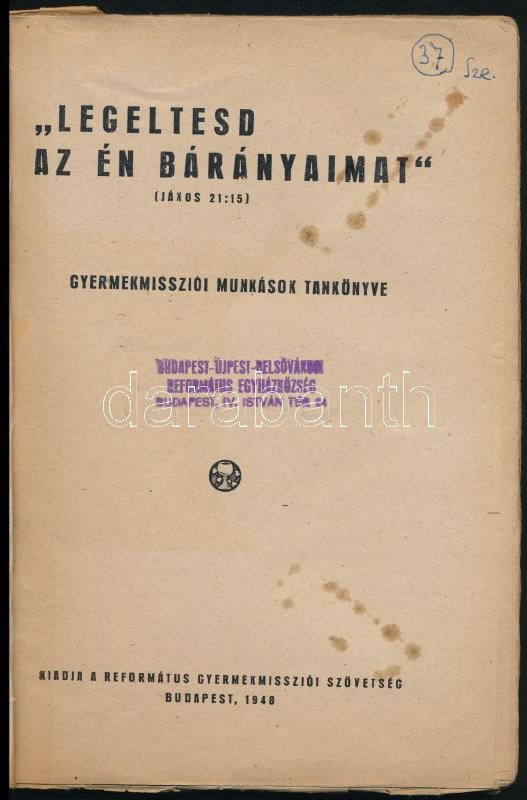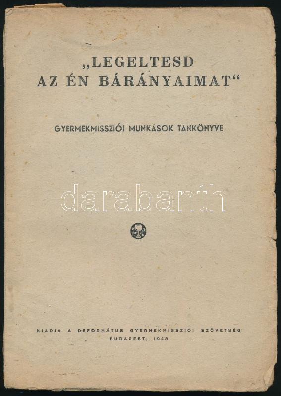 ,,Legeltesd az én bárányomat". Gyermekmissziói munkások tankönyve. Bp., 1948, Református Gyermekmissziói Szövetség, 152+(4) p. Kiadói papírkötés, sérült borítóval, néhány foltos lappal, bélyegzőkkel.