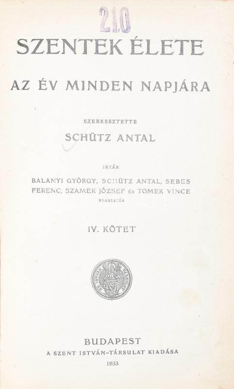 Schütz Antal (szerk.): Szentek élete az év minden napjára.IV. köt. Bp.... https://www.darabanth.com/de/472-Fernauktion/472.0/Bucher/Bucher-Religion~500031/Schutz-Antal-szerk-Szentek-elete-az-ev-minden-napjaraIV-kot-Bp-1933-Szent-Istvan-Tar~II3081593