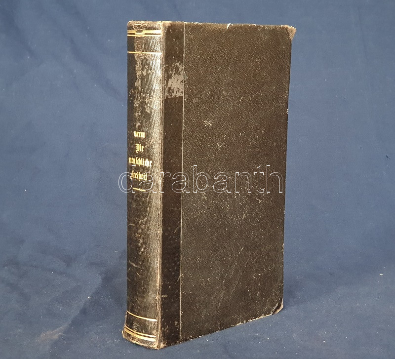 Aranyozott, enyhén sérült gerincű korabeli félbőr kötésben, mintás festésű lapszélekkel. Jó példány.