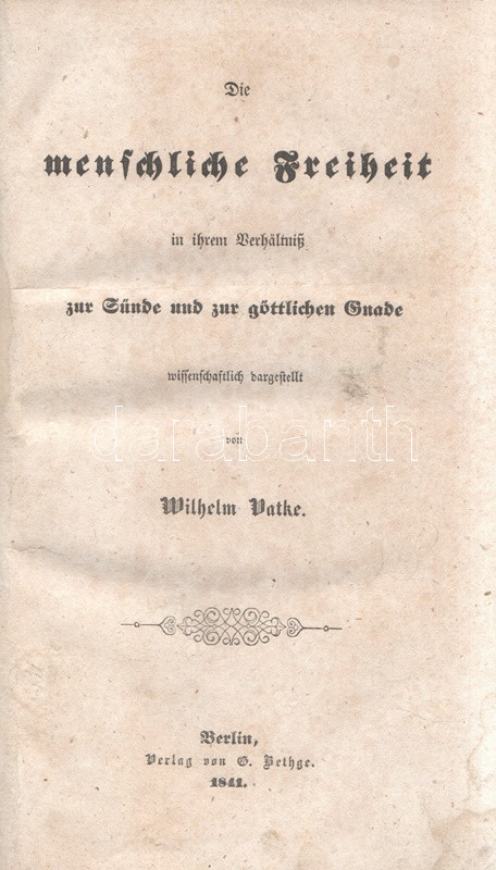 Wilhelm Vatke (1806-1882) berlini protestáns teológus a bűnbe vetett ember szabadsághoz való viszonyát vizsgálja.