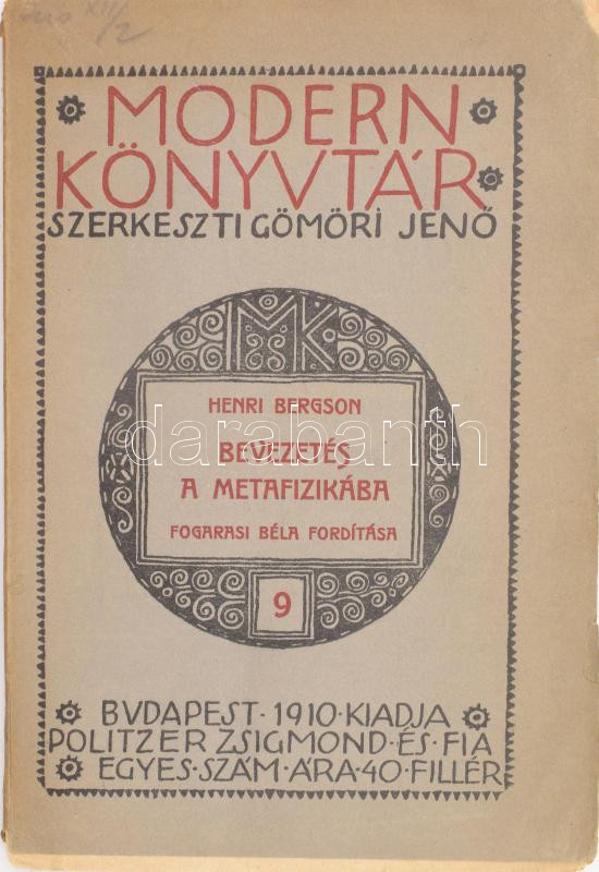Bergson, Henri: Bevezetés a metafizikába. Ford.: Fogarasi Béla. Modern... https://www.darabanth.com/de/472-Fernauktion/472.0/Bucher/Bucher-Sozialwissenschaften~500027/Bergson-Henri-Bevezetes-a-metafizikaba-Ford-Fogarasi-Bela-Modern-Konyvtar-9-Bp-1910-P~II3172499