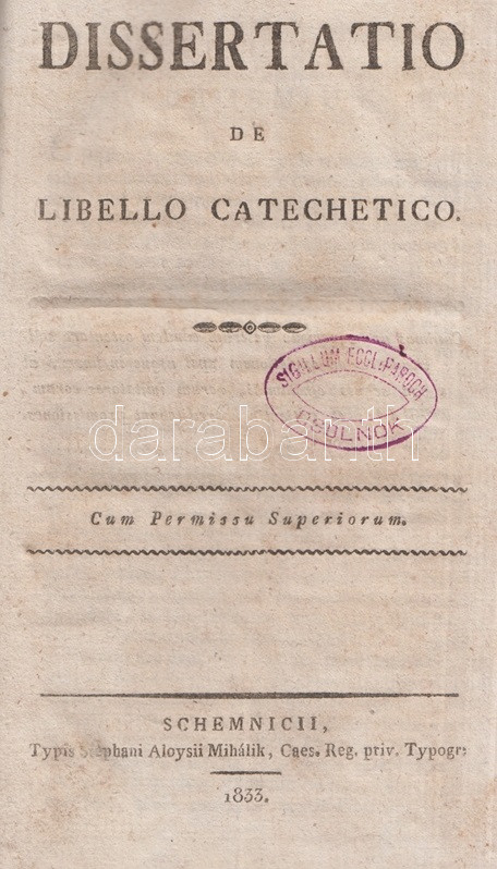 Katechetikai, vagyis hitoktatás-pedagógiai értekezés. A címlapon régi gyűjteményi bélyegzés.