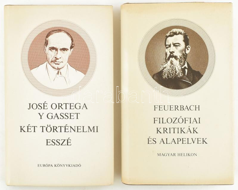José Ortega Y Gasset: Két történelmi esszé. Gerinctelen Spanyolország. A történelem mint rendszer. Ford.: Farkas Géza. A jegyzeteket összeáll. és az utószót írta: Csejtei Dezső. Bp., 1983, Európa. Kiadói egészvászon-kötés, kiadói papír védőborítóban. + Ludwig Feuerbach: Filozófiai kritikák és alapelvek. Ford.: Endreffy Zoltán. Az utószót és a jegyzeteket Ág Attila írta. Bp., 1978, Magyar Helikon. Kiadói egészvászon-kötés, kiadói papír védőborítóban.
